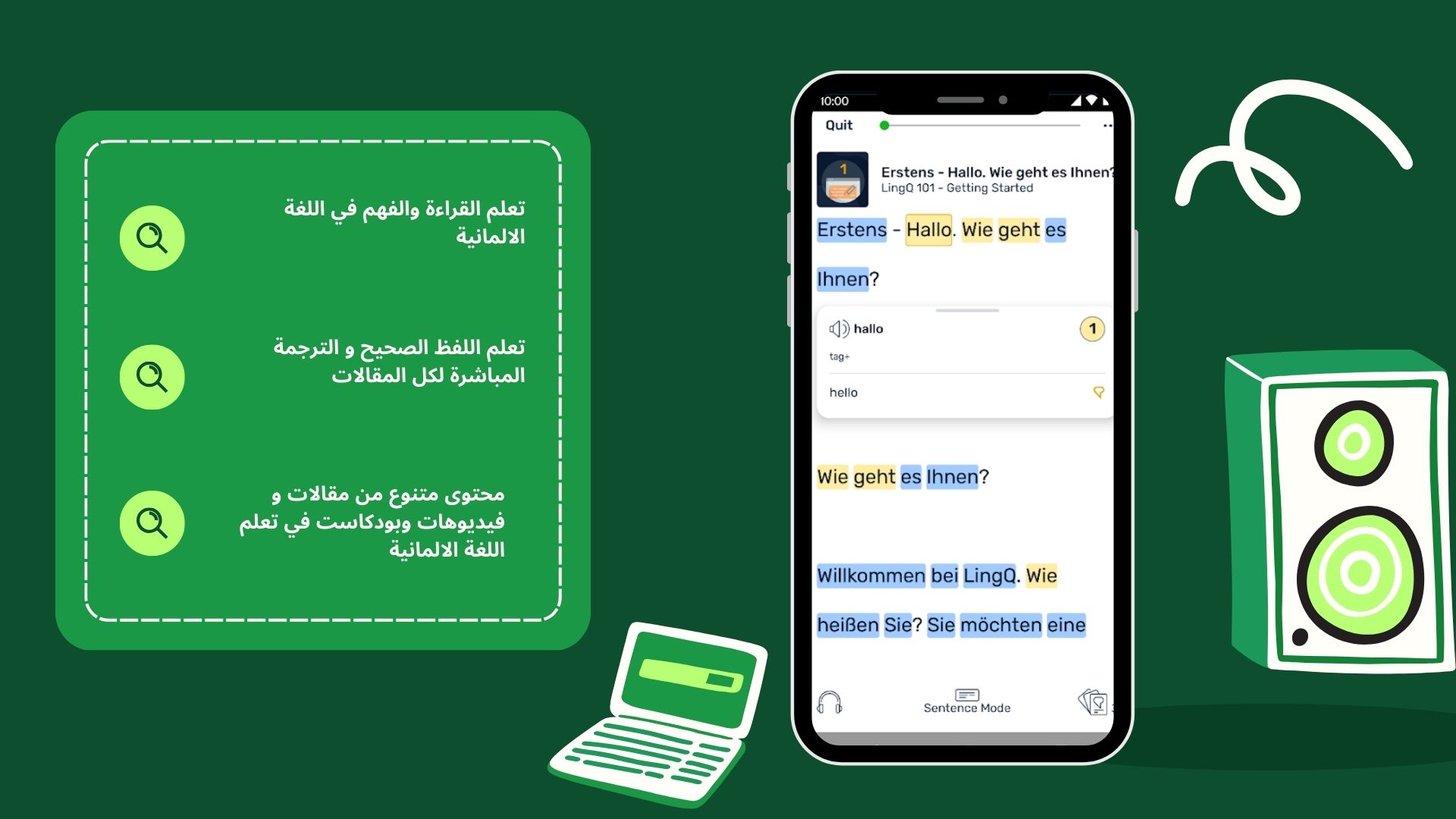 kreative Deutschlernen App indem du Texte mit korrekter Aussprache und Übersetzung